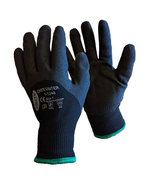 Onyx vinter är en fodrad handske i syntetmaterial, 3/4 doppad i skummad vinyl som ”andas”. Den är mycket mjuk och skön.
